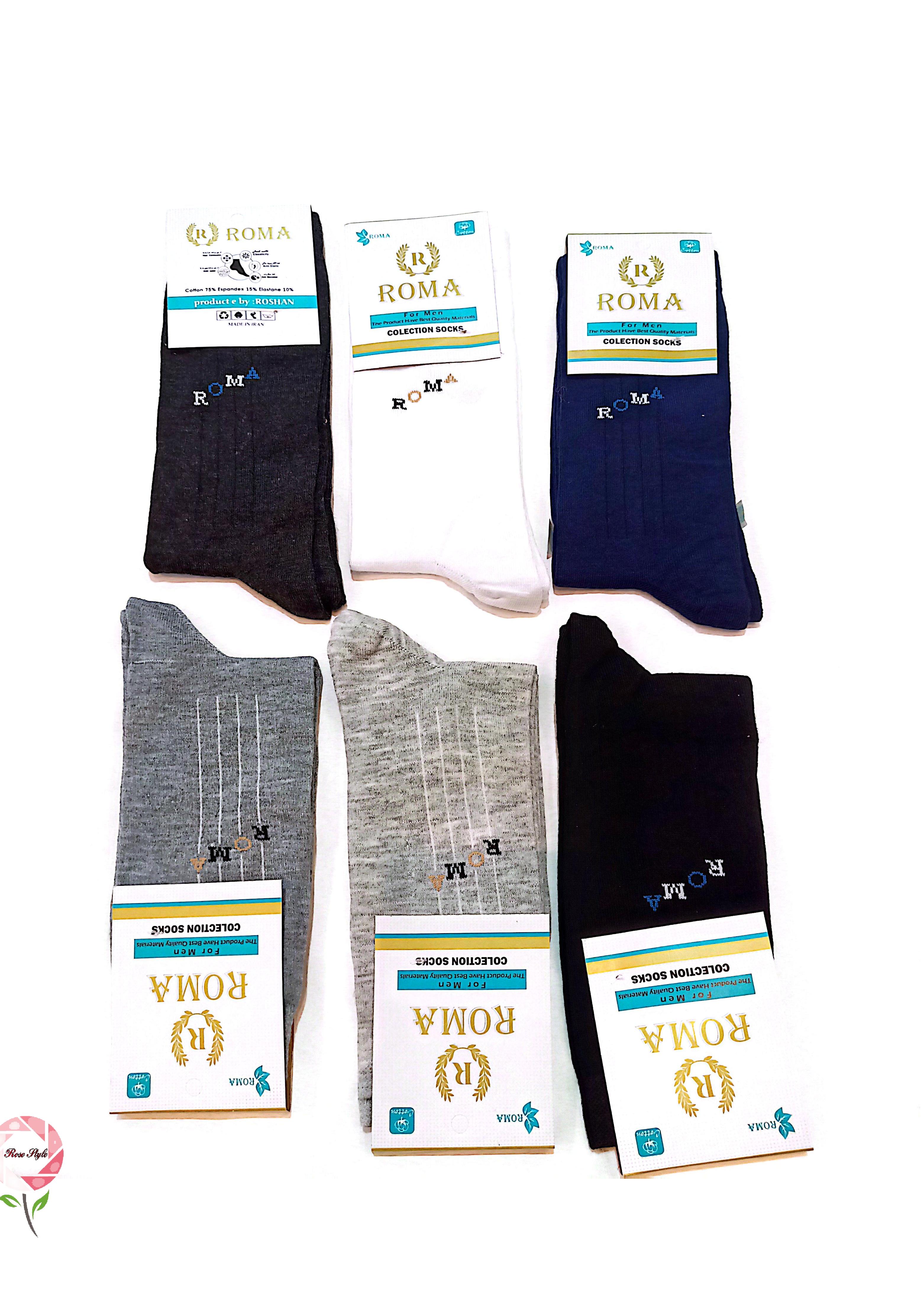 جوراب مردانه ساق بلندROMAسه خط نخ پنبه رزاستایل 1065c