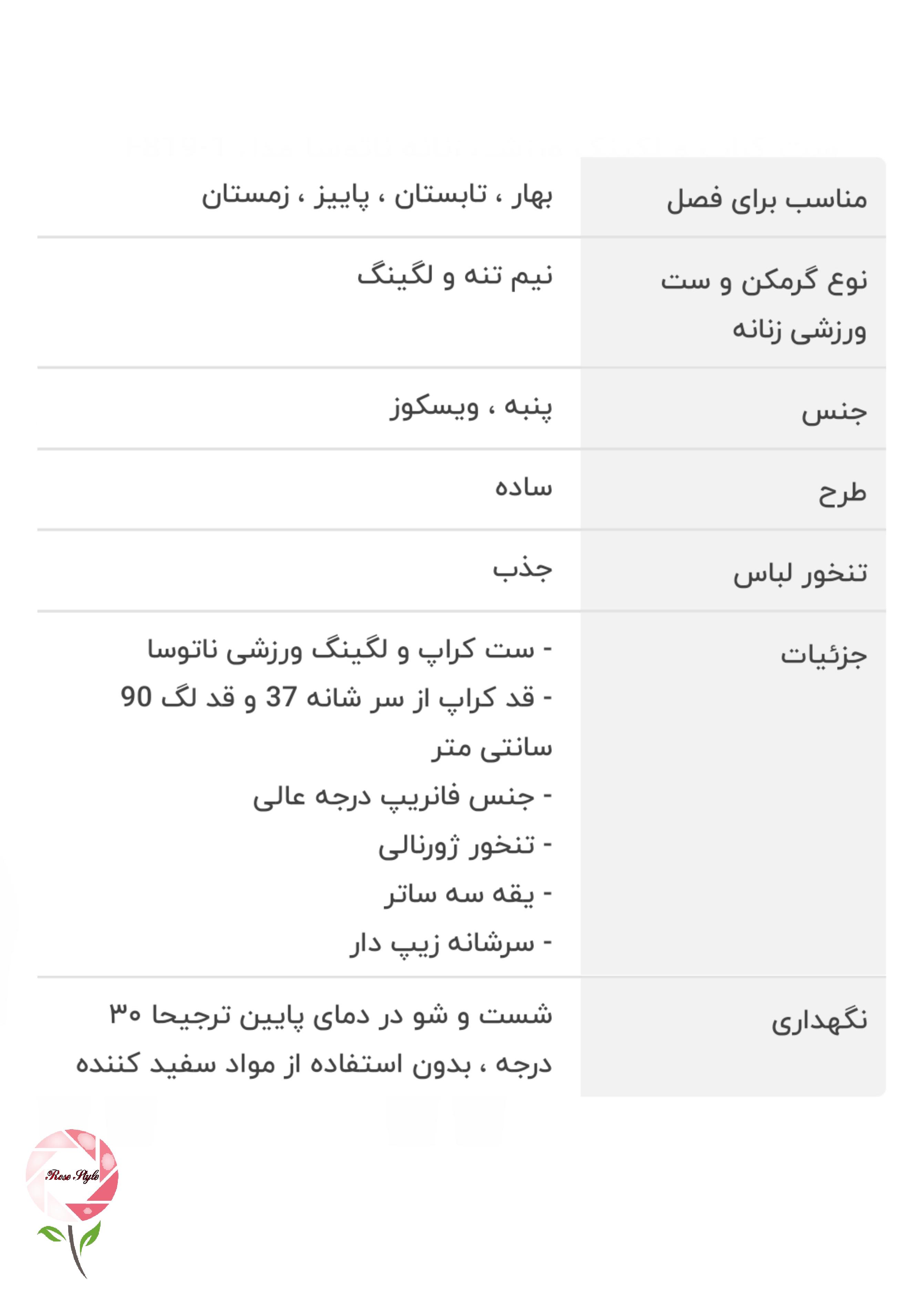 ست کراپ و لگینگ ورزشی زنانه رزاستایل۱۰۹۰