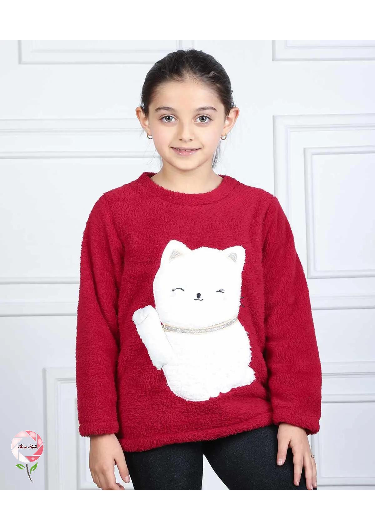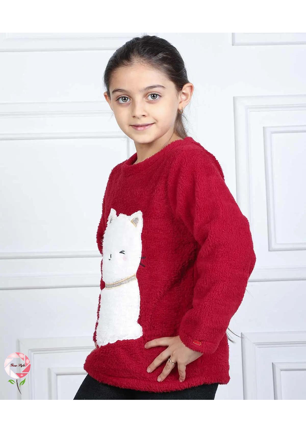 بلوز زمستانی طرح cat دخترانه رزاستایل۱۱۷۱a