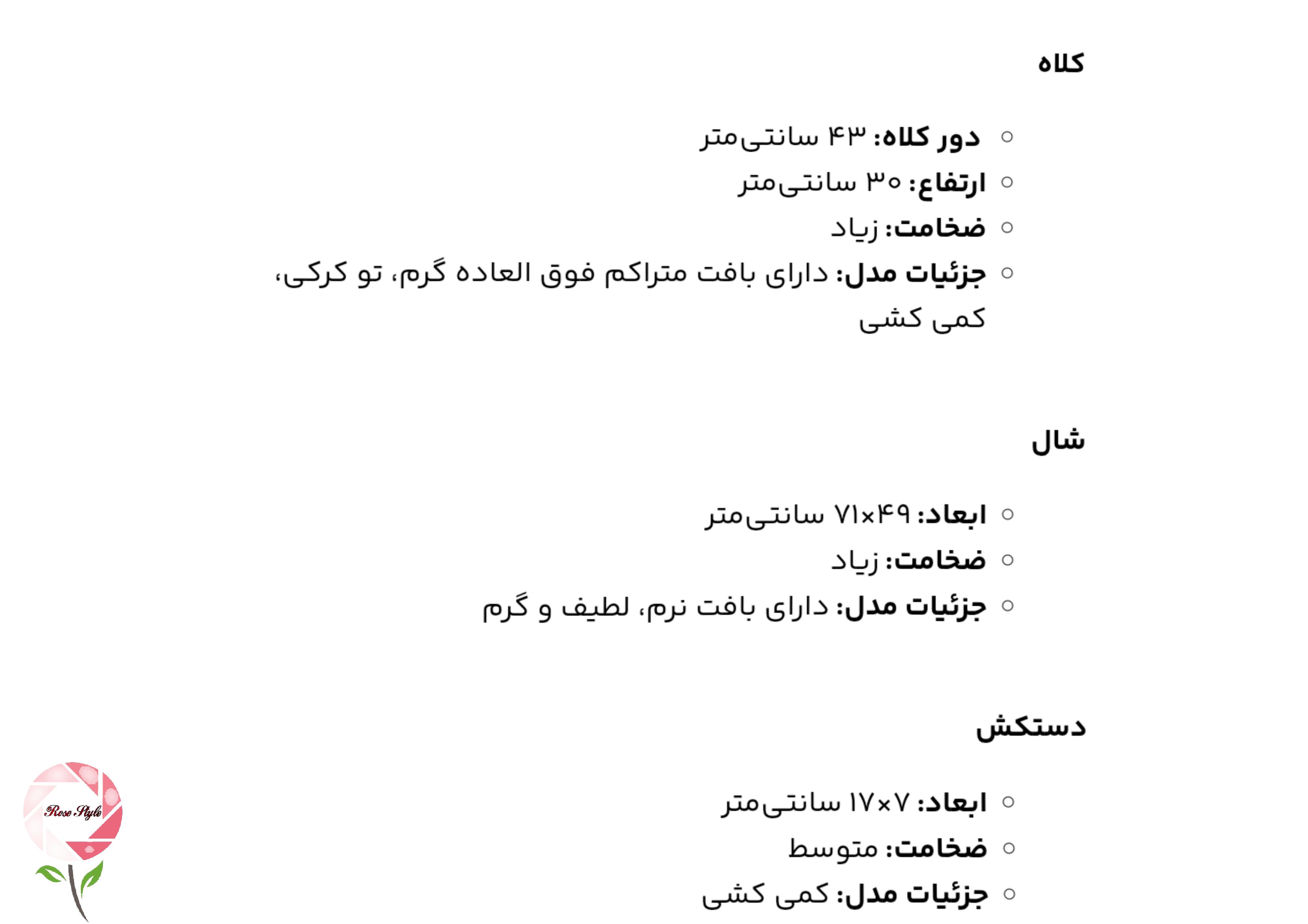 ست سه تیکه کلاه و شال گردن و دستکش رزاستایل1184