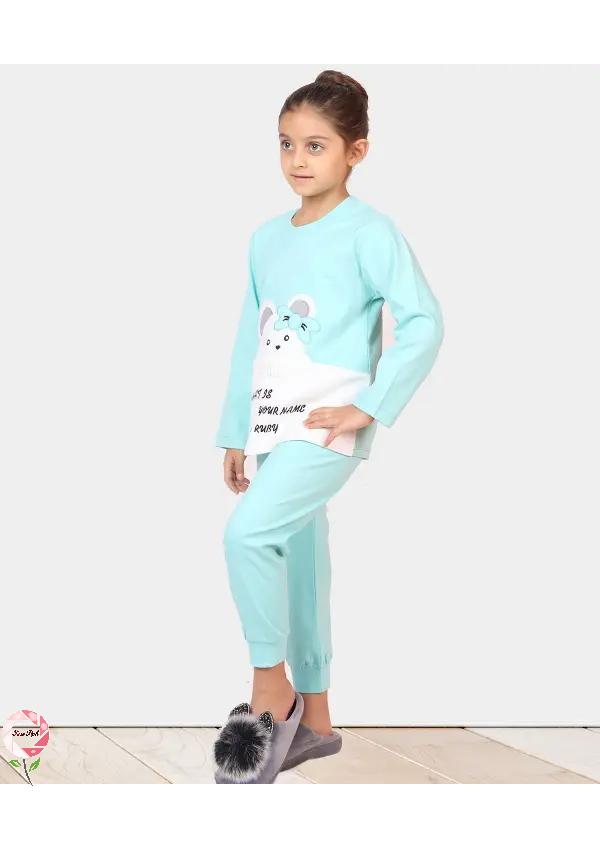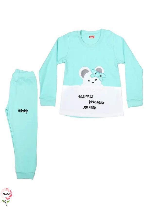 ست تیشرت آستین بلند و شلوار دخترانه رزاستایل۱۱۸۲ مادر Madar آبی روشن