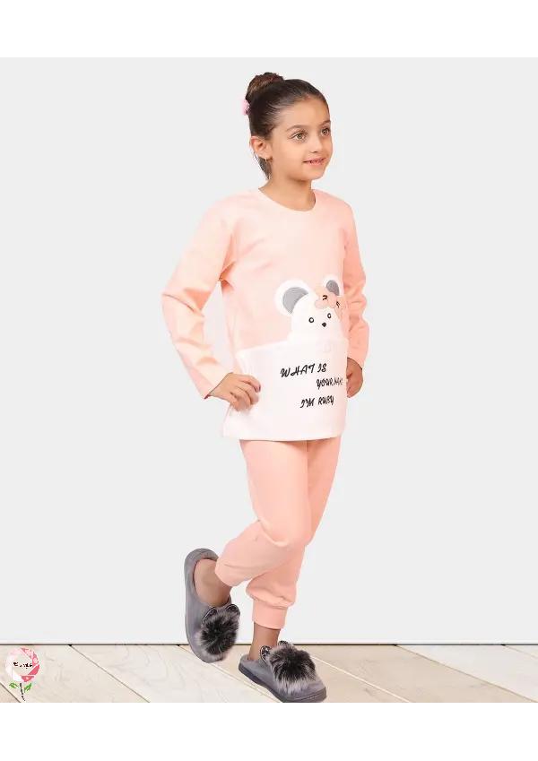 ست تیشرت آستین بلند و شلوار دخترانه رزاستایل۱۱۸۲ مادر Madar گلبهی