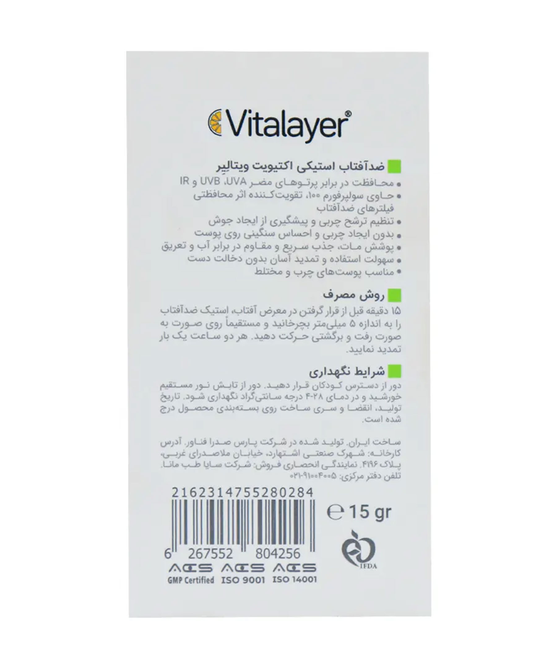 ضدآفتاب استیکی اکتیویت ویتالیر Vitalayer وزن 15 گرم رزاستایل۱۱۹۰