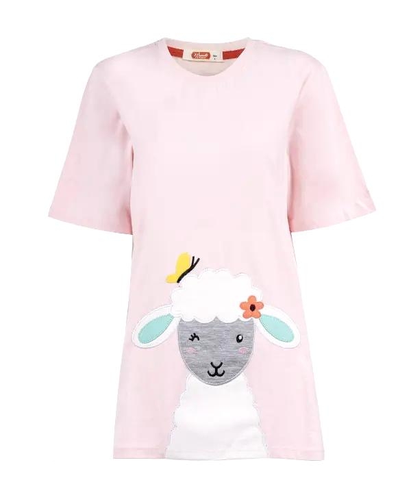 جزئیات مدل تیشرت: کشبافت ظریف در یقه، طرح برجسته روی لباس، پیلی در آستین، سرآستین کشی