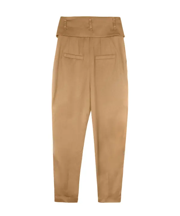 جزئیات مدل: دارای پل کمر، پیلی در کمر، شلوار از زانو به پایین کمی تنگ می شود.