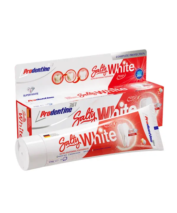 توضیحات محصول: خمیر دندان سفیدکننده پرودنتین، از ایجاد لکه های تیره، زردی و تغییر رنگ در دندان جلوگیری می کند. همچنین، از دندان ها در برابر تشکیل پلاک، جرم و پوسیدگی محافظت می کند. خمیر دندان سفیدکننده Salty White، با از بین بردن میکرو ارگانیسم ها و باکتری های مضر دهان و دندان، محافظت کامل از دندان ها را به عمل می آورد. این خمیر دندان، دهان و تنفس شما را خوشبو و با طراوت خواهد کرد.
