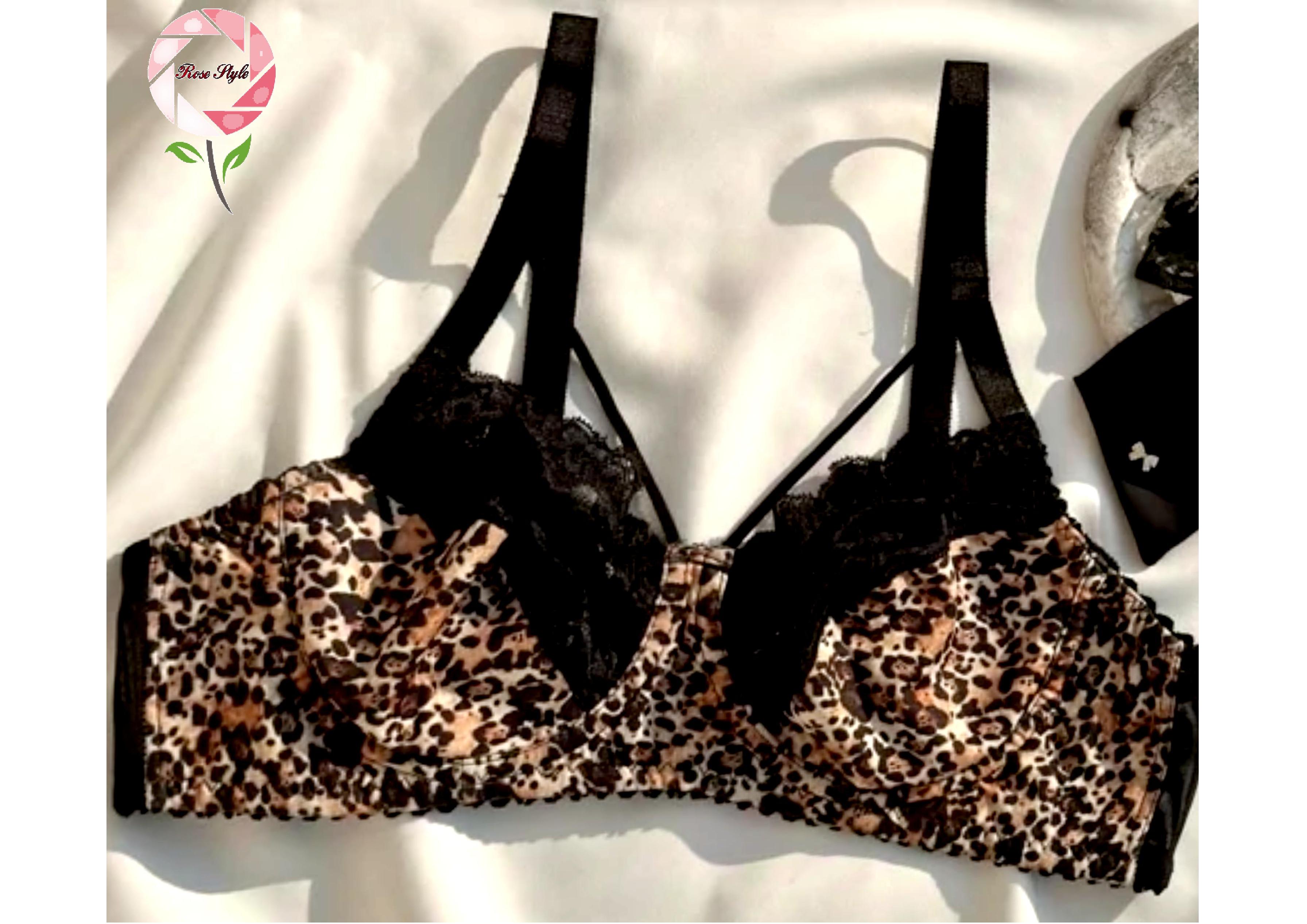 سوتین دانتل فنری رزاستایل طرح پلنگی1028c